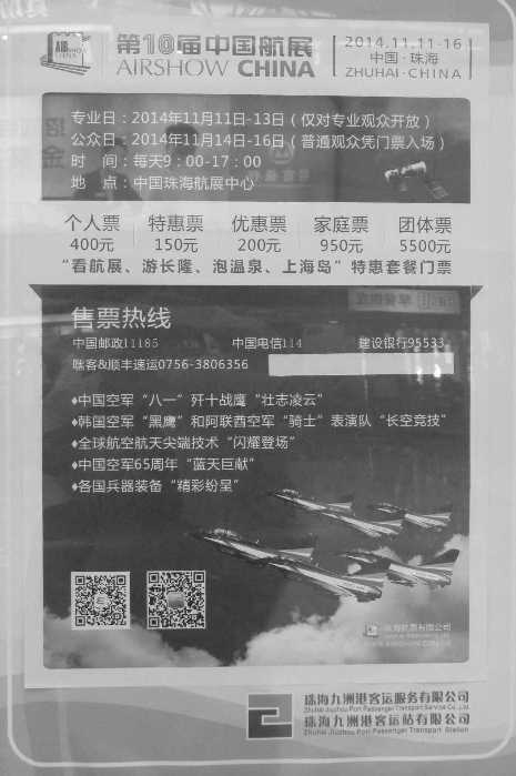 で、某所で見かけた中国珠海エアショーのポスター(白黒にしています)