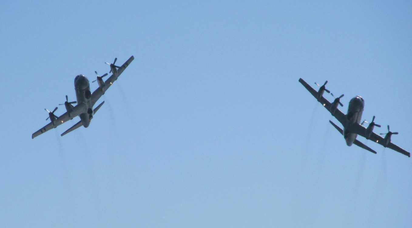 こちらは展示飛行中のUP-3D(電子戦訓練支援機)