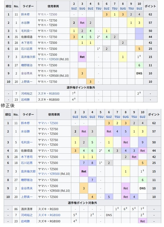 (リンク)の修正ランキング表を参考にしたものかどうかはわかりませんが、修正されたこと自体嬉しいことです。ただ、鈴木修の順位等が私の修正版ランキング表と異なりますが・・・