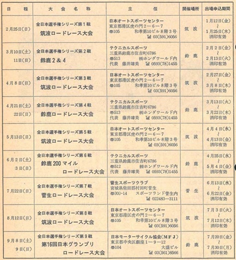 1979年のロードレース全日本選手権の日程です。このうち、第4戦は国際A750・350の開催予定はありませんから、国際A750・350は全8戦です。